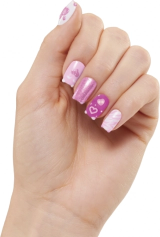 - Kreative Maniküre – Sticker, Glitzer, Mini-Lack und Tools zur Gestaltung.