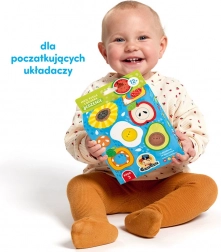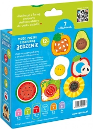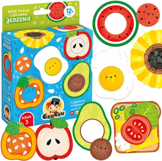 Mein Puzzle mit Loch – Essen ist das ideale erste Puzzle für Kleinkinder. Große, stabile Teile mit fröhlichen Illustrationen beliebter Leckereien laden zum Spielen und Lernen ein. Die austauschbaren Scheiben können auch „verkehrt herum“ oder zwischen die einzelnen Bilder eingesetzt werden – so entstehen lustige und unerwartete Kombinationen, die Kinder lieben.