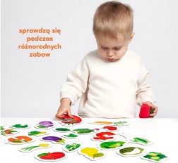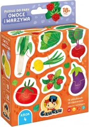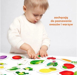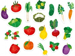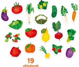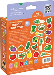 Auf den farbenfrohen Puzzles sind gesunde Leckereien aus Garten und Obstgarten abgebildet. Das Suchen und Zuordnen der Hälften ist vielseitiger Entwicklungsspaß, der die Auge-Hand-Koordination verbessert und spielerisch hilft, neue Wörter und Wissen über die Welt um uns herum zu lernen und zu festigen.
