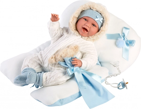 Stilvolles 3-teiliges Set für NEW BORN Puppen in der Größe 40–42 cm – alles für bequemes Umkleiden und Spielen. Enthalten sind ein Outfit mit dekorativem Taschentuch, eine weiche Unterlage mit Schleife und Gurten, die als praktischer Stuhl dient, sowie hochwertige Handarbeit aus Spanien. Ideal für Kinder ab 3 Jahren, die ihre Puppen gern umsorgen.