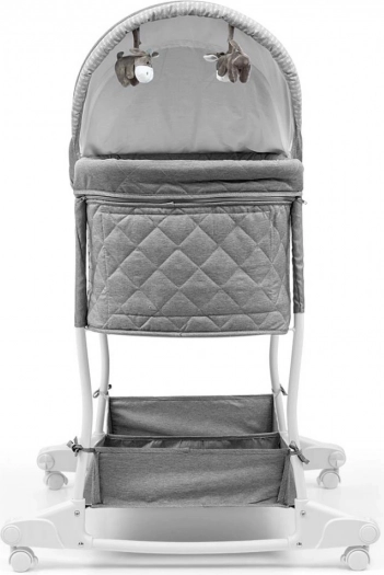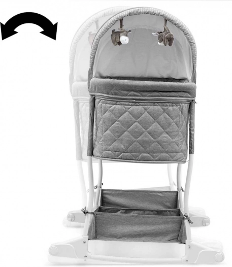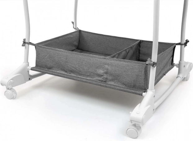 Ein praktischer Aufbewahrungskorb im unteren Teil der Wiege bietet Platz für die wichtigsten Babyutensilien und ermöglicht schnellen Zugriff.