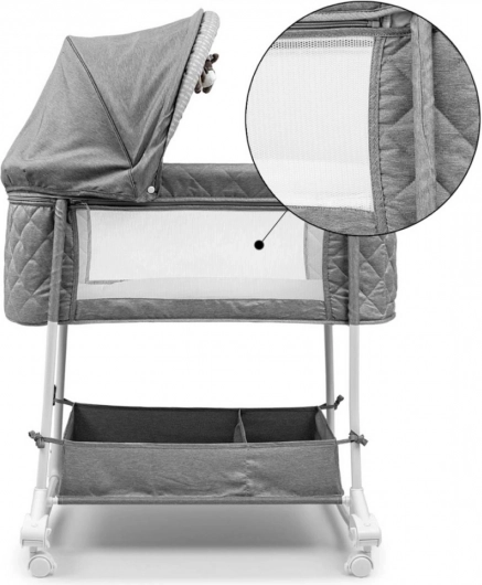 Eltern, die Wert auf Praktikabilität und Komfort legen, finden in dieser Wiege die ideale Lösung. Dank ihrer kompakten Maße passt sie in jedes Schlafzimmer und ist perfekt für Besuche bei Familie und Freunden. Die Höhe der Seitenwände mit atmungsaktivem Netz gewährleistet eine optimale Luftzirkulation und ermöglicht volle Kontrolle sowie schnelles Reagieren beim Aufwachen des Babys. Das unterstützt rasches Beruhigen und einen besseren Schlaf des Kindes.