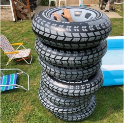 Wir bieten Ihnen einen stilvollen aufblasbaren Ring in Reifenform, ideal zur Entspannung und Unterhaltung im Wasser. Dieses Produkt besticht durch sein realistisches Laufflächenmuster und kontrastreiche Farben, die ihm einen einzigartigen Charakter verleihen. Es ist eine hervorragende Wahl sowohl für Pools als auch Strände oder Seen.