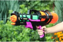 Diese Wasserpistole kombiniert Größe, Leistung und Komfort. Der große Tank mit 1,25 Liter verlängert das Spiel ohne häufiges Nachfüllen und die Reichweite von ca. 6 Metern sorgt für einen eindrucksvollen Wasserstrahl. Die Bedienung ist einfach: Tank abschrauben, mit Wasser füllen, verschließen und mit dem unteren Schieberegler pumpen – schon ist sie einsatzbereit.