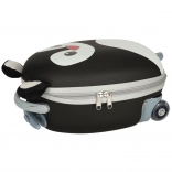 Der praktische Teleskopgriff (73 cm ab Boden) und die laufruhigen Rollen sorgen für sanfte Bewegung. Außen begeistert das verspielte Pinguin-Design, innen erfreuen die geräumige Abteilung und die Gurte zur Fixierung des Inhalts.