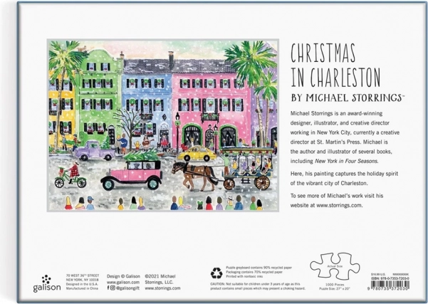 Erleben Sie den Zauber der malerischen Straßen von Charleston während der Weihnachtszeit mit dem Puzzle Weihnachten in Charleston von Michaela Storrings. Dieses Kunstwerk bietet nicht nur eine wunderbare Möglichkeit zur Entspannung, sondern fördert auch Ihr logisches Denken und Ihren Sinn für Details.