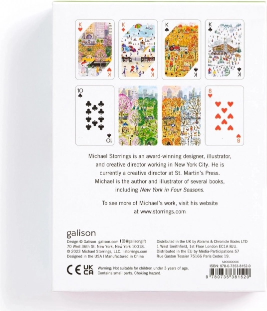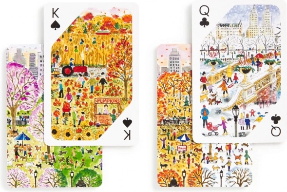 Dieses Design-Set bringt eine einzigartige Atmosphäre in Ihre Spieleabende. Jedes Deck ist mit originalen Illustrationen urbaner Szenen und Landschaften verziert, inspiriert von Frühling, Sommer, Herbst und Winter. Zwei vollständige Decks sind in einer stabilen Schubladenbox mit Magnetverschluss für eine einfache und sichere Aufbewahrung untergebracht.