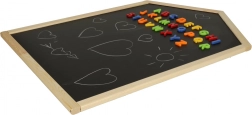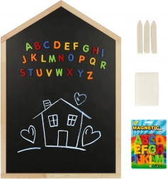 Diese magnetische Kreidetafel in Hausform vereint Spiel und Lernen. Dank der Kombination aus Kreidefläche und magnetischer Oberfläche können kleine Künstler zeichnen, erste Buchstaben und Zahlen schreiben oder Wörter aus bunten magnetischen Buchstaben legen. Die Tafel ist zur Wandmontage vorbereitet und wird zur originellen Dekoration des Kinderzimmers.
