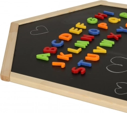 Das Set mit magnetischen Buchstaben unterstützt das Erlernen des Alphabets, erweitert den Wortschatz und motiviert Kinder, direkt auf der Tafel Wörter zu bilden.