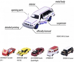 In der Kollektion finden Sie Legenden wie CITROËN HY (1968), MERCEDES-BENZ 450 SEL (1975), VOLVO 240 GL (1985), CHEVROLET CORVETTE ZR-1 (1990) und ALFA ROMEO GIULIA (2015).