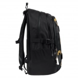 Der Rucksack ist aus robustem und wasserfestem Material gefertigt, was seine Widerstandsfähigkeit gegen ungünstige Witterungseinflüsse garantiert. Reflektierende Elemente bieten erhöhte Sicherheit und der Metallanhänger in Form eines Skates vervollständigt das moderne Design dieses praktischen Rucksacks.