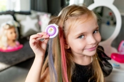 Geben Sie Ihren Kindern die Möglichkeit, mit der Haarfarbe zu experimentieren dank der violetten Haarkreide von Beauted. Dieses spielerische Kosmetikprodukt wurde so entworfen, dass es sicher und einfach anzuwenden ist und ermöglicht eine einfache und schnelle temporäre Haarfärbung.