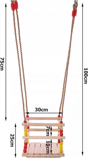 Starke, geflochtene Seile mit Ringen und Beschlägen sorgen für Stabilität und Sicherheit. Die kompakten Maße sparen Platz und die Schaukel lässt sich leicht transportieren oder verstauen. Bunte Perlen verleihen einen verspielten Look – Kinder werden die Schaukel schnell lieben.