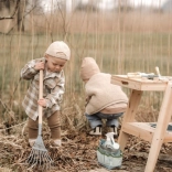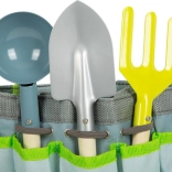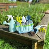 Die leichte, tragbare Tasche bietet viel Platz, elastische Halterungen für das Werkzeug und einfaches Tragen. Das Set ist auf Kinderhände zugeschnitten, sodass die Arbeit im Garten, an Hochbeeten oder im Sandkasten natürlich und spielerisch gelingt. Robuste Materialien halten dem täglichen Gebrauch und unterschiedlichen Untergründen stand.