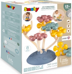 Kleines Smoby Korallenspielzeug ist aus acht farbenfrohen Plastikelementen gefertigt, die an dekorative achtbeinige und schildkrötenförmige Objekte erinnern. Kinder können die Teile leicht miteinander verbinden und deren Anordnung auf den Ästen des Baumes ändern, was ihre Kreativität fördert.