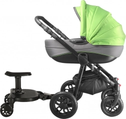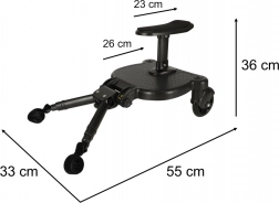 Genießen Sie entspannte Spaziergänge mit zwei Kindern dank des universellen Boards mit Sitz. Das ältere Kind kann je nach Bedarf sitzen oder stehen, während das jüngere im Kinderwagen ruht. Die langlebige Verarbeitung und stabile Rollen sorgen für eine sanfte und sichere Fahrt.