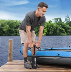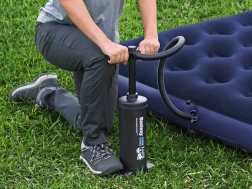 Diese zweistufige Handpumpe ermöglicht ein schnelles Aufblasen, da sie beim Hoch- und Herunterziehen Luft pumpt. Sie ist eine ausgezeichnete Wahl für Camping und andere Outdoor-Aktivitäten dank ihrer kompakten Größe.