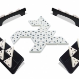 Die zu platzierenden Steine haben die Form gleichseitiger Dreiecke mit Zahlen in den Ecken. Beim Anlegen eines weiteren Steins an eine bereits bestehende Auslage muss darauf geachtet werden, dass die Zahlen in den angrenzenden Ecken übereinstimmen. Die Zahlen in den Ecken des von uns angelegten Steins sind die Punkte, die wir erhalten – daher lohnt es sich, über Taktik und jeden Zug nachzudenken!