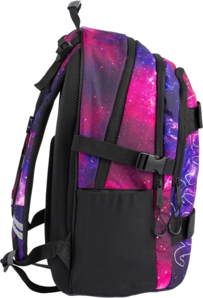 Entdecken Sie die perfekte Kombination aus Funktionalität und Stil. Das Schulset BAAGL Skate Galaxy bietet einen strapazierfähigen Rucksack mit dreiteiliger Aufteilung, Organizer und gepolstertem Fach für einen 15"-Laptop oder ein Tablet. Ergonomisch geformte Rückenpolster, vollständig verstellbare Schulter-, Brust- und seitliche Kompressionsgurte sorgen für gesundes und bequemes Tragen den ganzen Tag. Vordere Gurte dienen zur Befestigung eines Skateboards, seitliche elastische Taschen fassen eine Trinkflasche und reflektierende Elemente erhöhen die Sichtbarkeit.