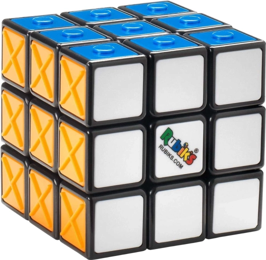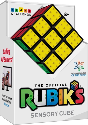 Der 3x3 Rubik’s Sensory Cube bringt das legendäre Puzzle in einer zugänglichen Form mit Reliefmustern auf jeder Farbe. Die Texturen – Punkte (Gelb), Quadrate (Rot), volle Kreise (Blau), Ringe (Grün), Kreuze (Orange) und glatt (Weiß) – ermöglichen die Unterscheidung der Seiten auch durch Tasten.