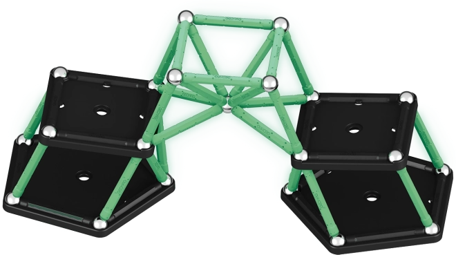 Das Geomag Glow Set verbindet Spaß und Lernen. Leuchtende Magnetstäbchen erwachen nach Einbruch der Dunkelheit zum Leben und verwandeln jedes Modell in eine faszinierende Lichtshow. Die Teile bestehen aus 100 % recyceltem Kunststoff – spielerisch und nachhaltig zugleich.