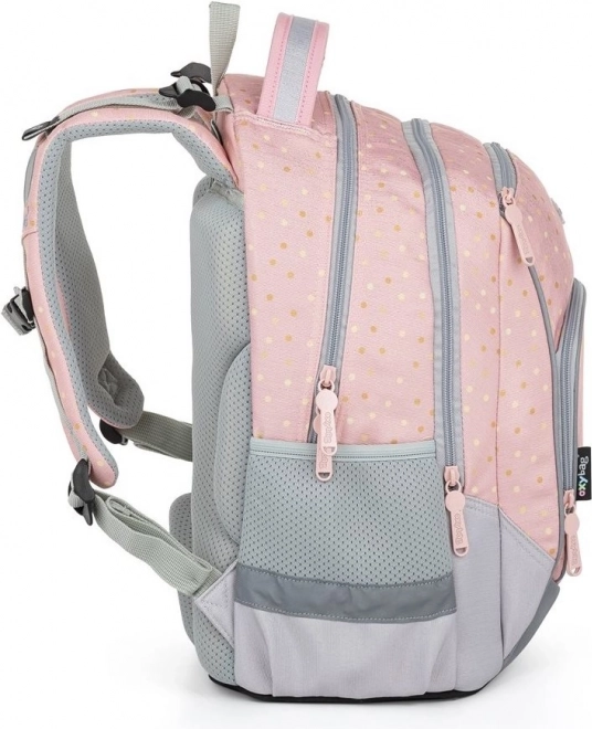 Der Schulrucksack OXY GO im zarten Design mit Schmetterlingsmotiv überzeugt nicht nur optisch, sondern auch durch durchdachte Ergonomie. Dank des atmungsaktiven Rückenteils und der verstellbaren Schultergurte bietet er ganztägigen Tragekomfort und unterstützt eine korrekte Körperhaltung. Das geringe Gewicht von 0,99 kg und Reflexelemente erhöhen die Sicherheit auf dem Schulweg.