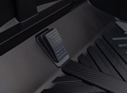 Der Innenraum begeistert mit zwei separaten Sitzen aus schwarzem, atmungsaktivem Eco‑Leder mit 5‑stufiger Einstellung, Sicherheitsgurten und zu öffnenden Türen mit Kindersicherung. Das umfangreiche Multimedia‑Panel mit MP3, USB, Bluetooth und Lenkradgeräuschen sorgt für Unterhaltung auf längeren Fahrten. Die 2,4‑GHz Fernbedienung für Eltern bietet die Wahl aus 3 Geschwindigkeiten und eine Sicherheits‑Stop‑Taste.