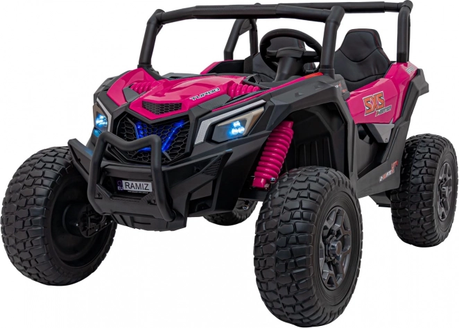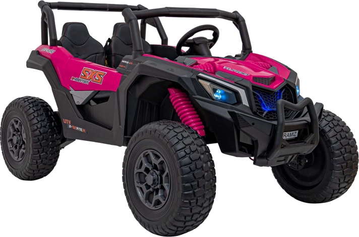 Das rosa UTV X3 Geländefahrzeug ist ideal für kleine Abenteurer, die das Gelände mit echtem Stil erkunden möchten. Dieses robuste Fahrzeug bietet eine Reihe von Funktionen, die Ihren Kindern stundenlangen Spaß und Sicherheit beim Fahren gewährleisten.