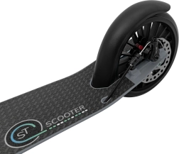 Für Ihre Sicherheit ist der Scooter mit einem doppelten Bremssystem ausgestattet – hintere Hand-Scheibenbremse und Fußbremse am Schutzblech. Die dreistufige Höhenverstellung des Lenkers (85–99 cm) passt sich Fahrern unterschiedlicher Größe an und die ergonomischen Gummigriffe sorgen auch auf längeren Strecken für Komfort.