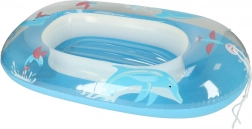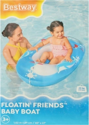 Für Sicherheit und Komfort sorgen der aufblasbare Boden sowie der weiche Rand rundum. Die praktische Zugleine ermöglicht Eltern, das Boot im seichten Wasser heranzuziehen oder zu führen. Im Lieferumfang ist außerdem ein Reparaturflicken enthalten.