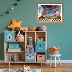 Leuchtende Farben und eine Rennszene begeistern alle kleinen Fans schneller Autos und motivieren zum Fertigstellen des gesamten Puzzles.