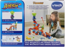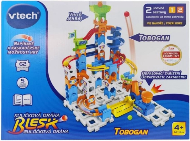 Die Kugelbahn Blitz verwandelt jeden Tag in spannende Rennen. Dank farbenfroher Teile, Spiralen und Trichter bauen Kinder dynamische Strecken, auf denen die Kugeln wie auf einer Rutschbahn hinuntersausen. Das Bauset fördert Kreativität, Logik und Feinmotorik.