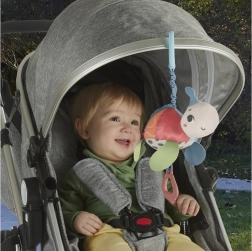 Das Spielzeug verwendet Stoffe, die zu 80 % aus recyceltem Kunststoff hergestellt sind, und wird in einer FSC-zertifizierten Verpackung geliefert. Der Toy Link mit zertifizierten Kunststoffen (ISCC, Massenbilanzmethode) erleichtert das sichere Befestigen an Kinderwagen, Tasche oder Spielbogen – perfekt für Spaß unterwegs.