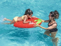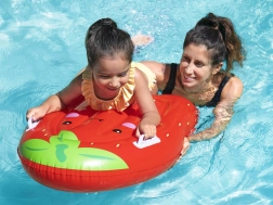 Die lebendige Farbe und das niedliche Erdbeer-Design motivieren Kinder zur Bewegung im Wasser und machen das Training zum Vergnügen. Das Brett ist leicht zu transportieren, passt in den Rucksack und hält dank der beiliegenden Reparaturflicken auch einem intensiven Sommer stand.