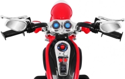 Das Motorrad ist mit einem beleuchteten Schalter, einem LED-Frontlicht und einem Audio-Panel mit 4 Soundtasten ausgestattet. Schließen Sie Musik über AUX an und versüßen Sie Kindern jede Ausfahrt.