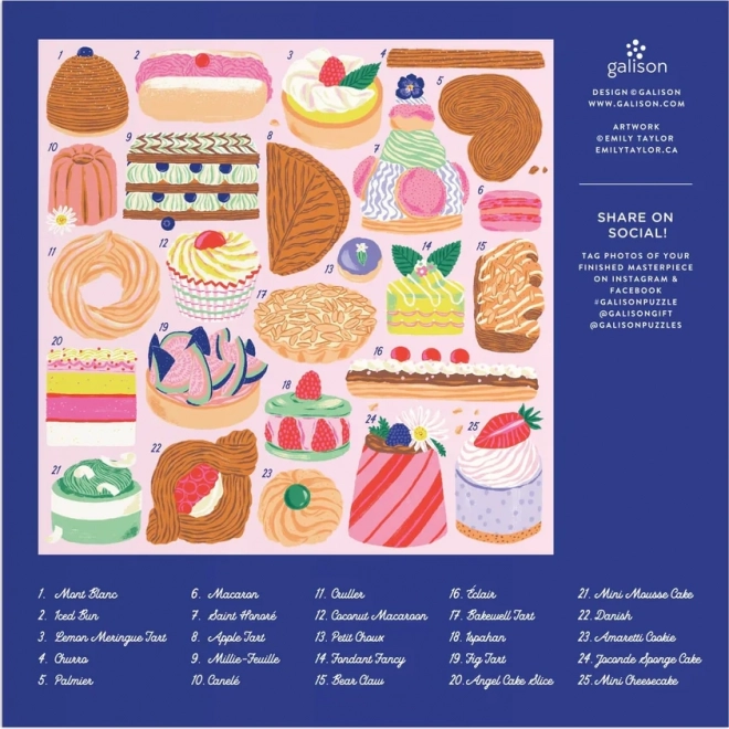 Das stilvolle quadratische Puzzle Süße Leckereien der Marke GALISON besticht durch leuchtende Farben und ein appetitliches Motiv, das sowohl Naschkatzen als auch Sammler von Design-Puzzles begeistert. Mit 500 Teilen bietet es eine ausgewogene Herausforderung und angenehm verbrachte Zeit allein oder mit der Familie.