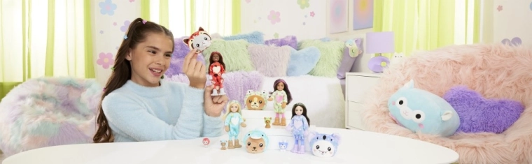 Die Barbie Cutie Reveal Chelsea Puppen begeistern Kinder mit einem niedlichen Kostüm und Überraschungen beim Auspacken, darunter eine Chelsea Puppe, ein Mini-Tier, stylische Modeaccessoires, 2-in-1-Spielmöglichkeiten und Farbwechsel-Spielspaß. Separat erhältlich, je nach Verfügbarkeit. Die Puppen können nicht allein stehen. Farben und Details können variieren.
