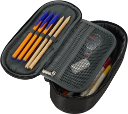 Die innere Klappe mit flexiblen Schlaufen sorgt für eine übersichtliche Aufbewahrung der meistgenutzten Utensilien, während die Netz-Reißverschlusstasche Kleinteile wie Radiergummis, Spitzer oder USB-Sticks sicher verstaut. Der zuverlässige Reißverschluss mit ergonomischem Griff lässt sich bequem bedienen und hält häufigem Gebrauch stand.