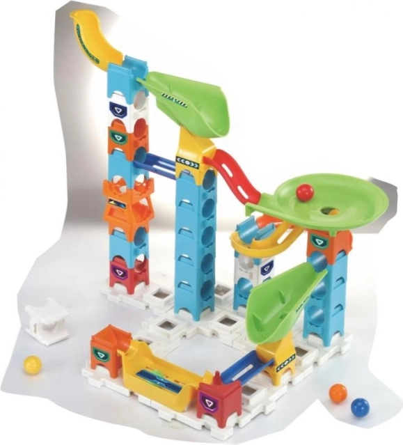 Das Set enthält genug Teile, damit Kinder ihre Murmelbahn ständig umgestalten und erweitern können.