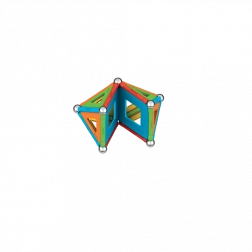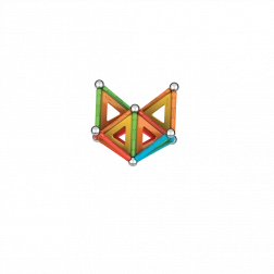 Mit den Geomag-Stäbchen und -Kugeln lassen sich mühelos originelle und stabile 3D-Konstruktionen bauen. Dreieckige, quadratische und fünfeckige Paneele verstärken und verzieren die Modelle, während die leuchtenden Farben die Fantasie anregen. Die Teile bestehen aus 100 % recyceltem Kunststoff – sie sind robust und zugleich umweltfreundlich.