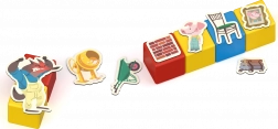 31 farbige Clips mit Figuren und Szenen aus Die drei kleinen Schweinchen fördern Fantasie, Sprachentwicklung und selbstständiges Erzählen.