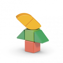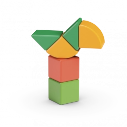 Die Kombination aus Würfeln und weiteren Formen fördert Kreativität, Feinmotorik und logisches Denken schon im frühen Alter.