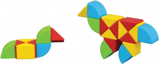 Das magnetische Konstruktionsset enthält 16 Halbwürfel und 8 Segmente in vier Farben. Kombinieren Sie sie mit anderen Formen der Magicube-Serie. Geeignet ab 1 Jahr.