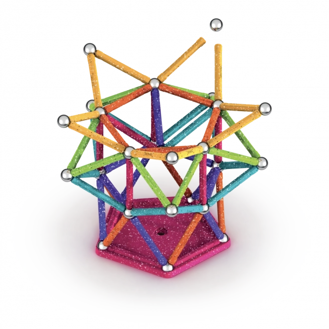 Mit dem Geomag Glitter Baukasten bauen Sie mühelos von einfachen Formen bis hin zu ausgefeilten 3D-Konstruktionen. Farbige Stäbe mit Glitzereffekt in Kombination mit robusten Stahlkugeln und Sockeln ermöglichen stabile und beeindruckende Modelle, die Kinder wie Erwachsene zum Experimentieren motivieren.