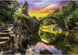 Tauchen Sie ein in die Atmosphäre der untergehenden Sonne über der legendären Rakotzbrücke. Dieses detailreiche Puzzle aus der Photo Odyssey-Kollektion bietet gestochen scharfen Druck, satte Farben und eine realistische Darstellung, die das Puzzeln zu einem visuell fesselnden Erlebnis macht. Die Größe des fertigen Motivs beträgt etwa 68,3 × 48 cm – ideal zum Einrahmen.