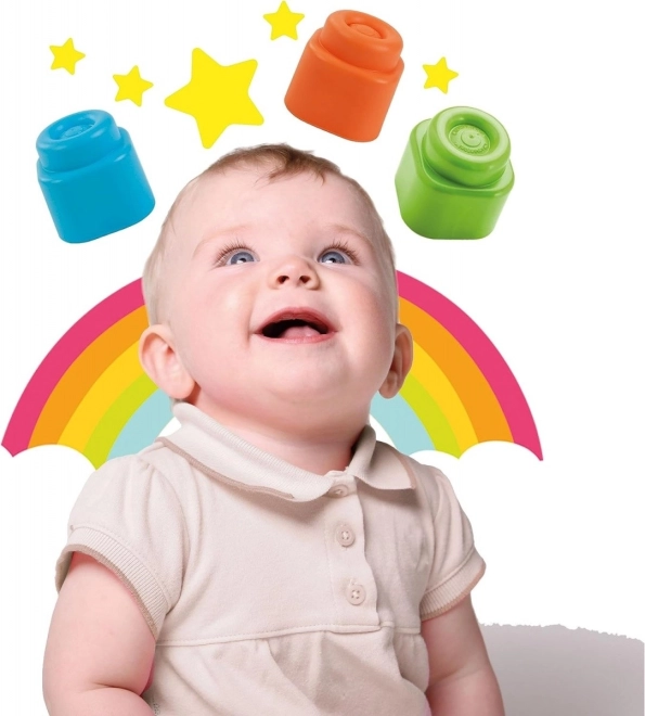 Weiche und sichere Bausteine für Kinder bereits ab 6 Monaten, ideal zur Förderung der Sinneswahrnehmung und Fingerfertigkeit. Perfekt für die ersten Bauwerke und Türme.