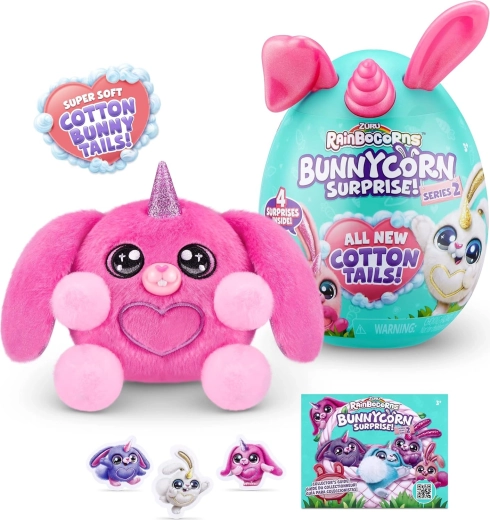 Klein, aber magisch – das Boo‑Boocorn Häschen aus der Reihe RAINBOCORNS bringt Kindern Freude an Überraschungen und kuscheligem Schmusen. In jedem Ei steckt ein Plüschhäschen mit glitzernden Öhrchen, flauschigem Schwänzchen und weiteren kleinen Accessoires zum Spielen und Sammeln.