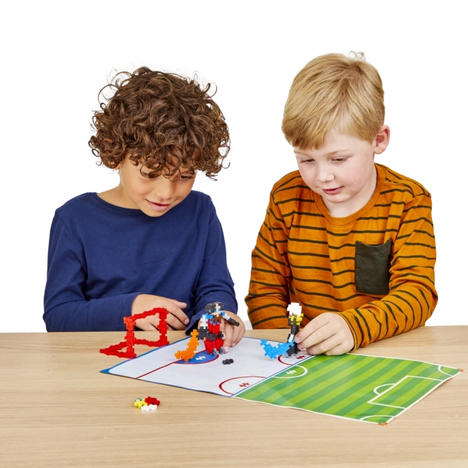 Plus-Plus Lerne zu bauen – Sporty ist ein unterhaltsames und lehrreiches Bauset, mit dem Kinder sportliche Szenen ganz leicht gestalten – Spieler, Tore, Bälle und ganze Spielfelder. Die Teile lassen sich einfach verbinden, halten fest zusammen und ermöglichen 2D- und 3D-Konstruktionen.