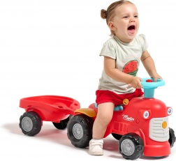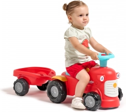 Das unterhaltsame und stabile Rutschfahrzeug im Traktorstil mit Anhänger begeistert kleine Fahrer ab 12 Monaten. Es bietet eine sichere Fahrt, robuste Kunststoffräder, eine drehbare Vorderachse für einfaches Lenken und eine Hupe für noch mehr Spaß. Ein praktischer Stauraum unter dem Sitz und der abnehmbare Anhänger fördern Fantasie und Motorik der Kinder.