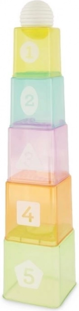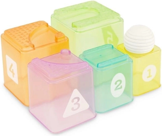 Das Set Infantino Stapelbecher mit Ball ist ideal für die ersten Entdeckungen von Formen, Farben und Zahlen. Die transparenten Becher mit gut lesbaren Zahlen können vom kleinsten bis zum größten gestapelt werden, um stabile Türme zu bauen – das stärkt die Feinmotorik und das räumliche Vorstellungsvermögen.